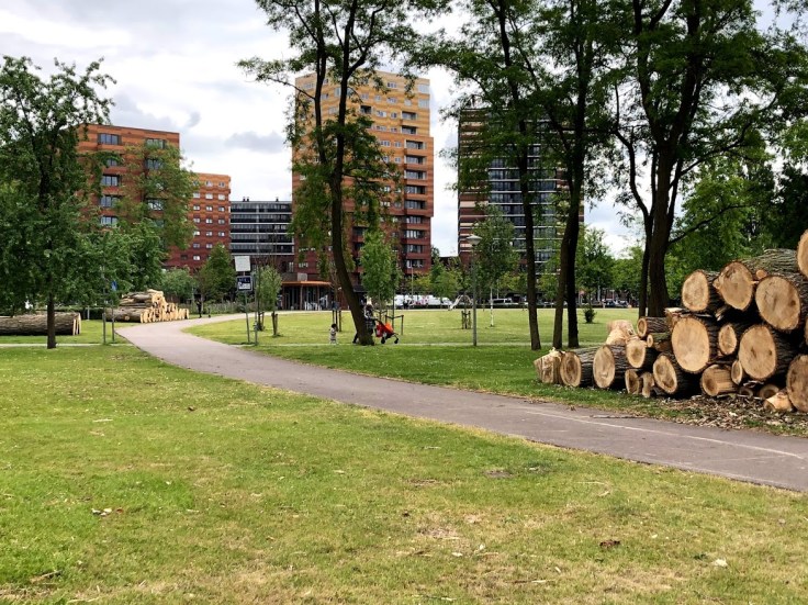 Na de storm van een paar weken terug lagen ze er weer, de enorme takken van Canadese populieren, waarvan er ruim 7.000 staan in Amsterdam. Omdat deze boomsoort zelfs op windstille zomerse dagen gevaarlijk dikke takken kan laten vallen, heeft de gemeente alle Canadese populieren laten onderzoeken. Ruim 6.000 bomen kunnen blijven staan en worden jaarlijks nagekeken, 936 bomen worden gekapt en vervangen door nieuwe duurzame boomsoorten. Nog plannen voor een pop up speel- of ontmoetingsplek? Grijp je kans. Het hout ligt voor het oprapen.