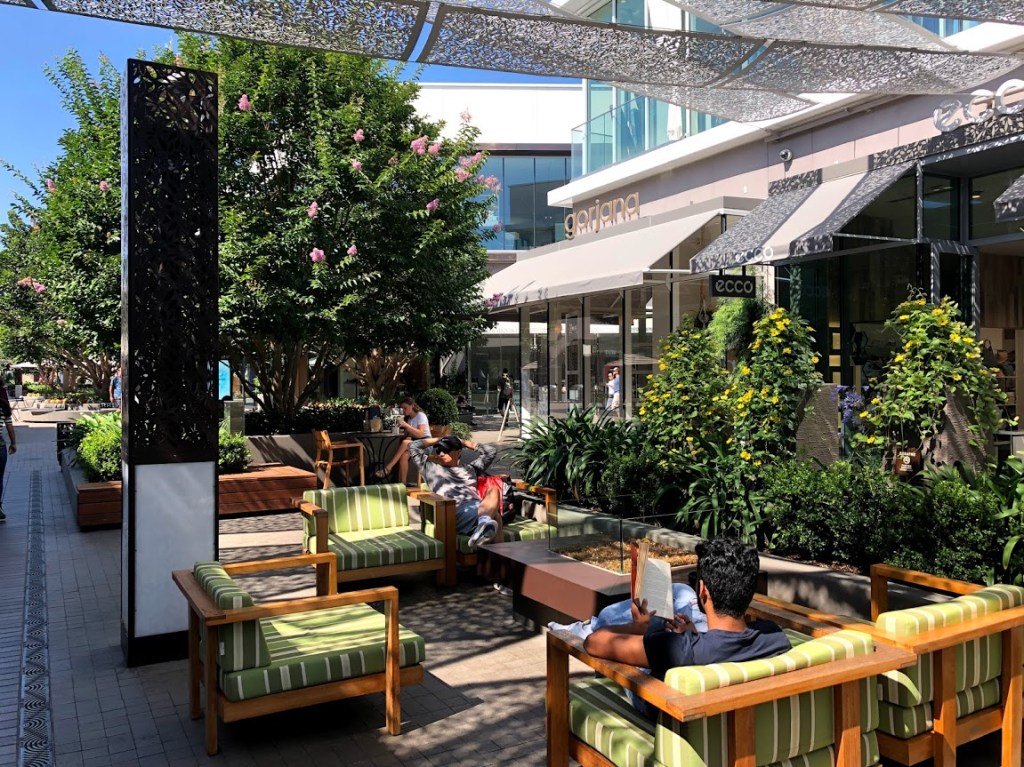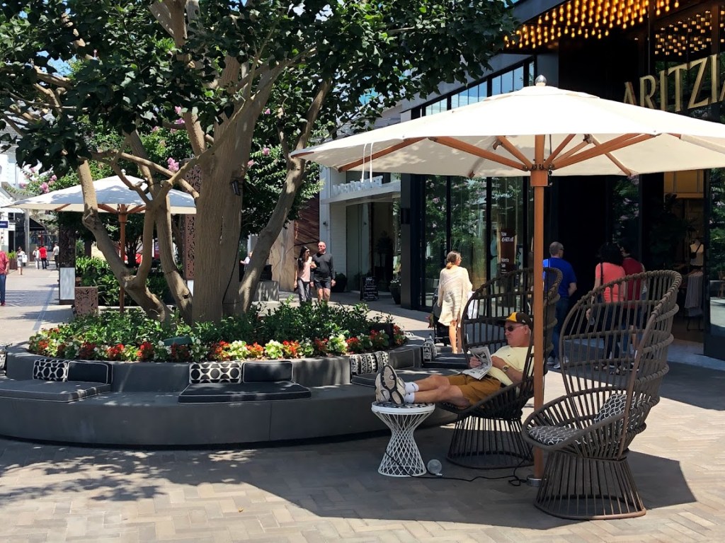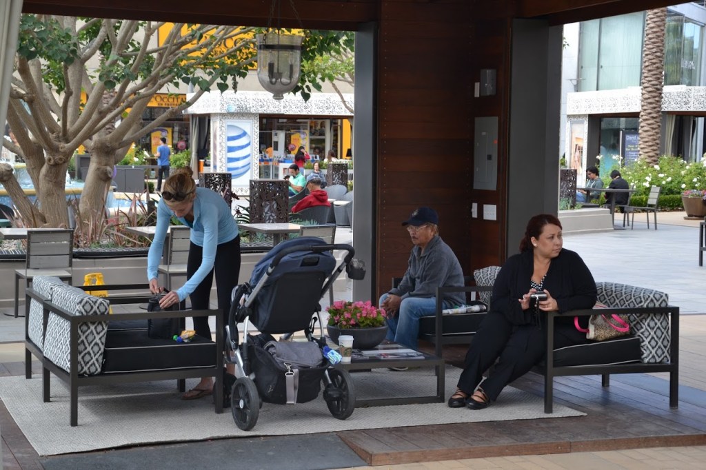 Winkelen een stressvolle bezigheid? Dat hoeft niet. De zon en de vele aantrekkelijke gratis zitjes maken van een bezoek aan de Westfield UTC mall in San Diego een ontspannende tijdsbesteding. Je komt hier namelijk ook om te luieren, te lezen, de kinderen te laten spetteren op de waterspeelplaats, te dineren bij een van de vele restaurants of om te hangen rond een van de vuurplaatsen. De mall als relax-, en ontmoetingsplek kennen we in Nederland nog niet.