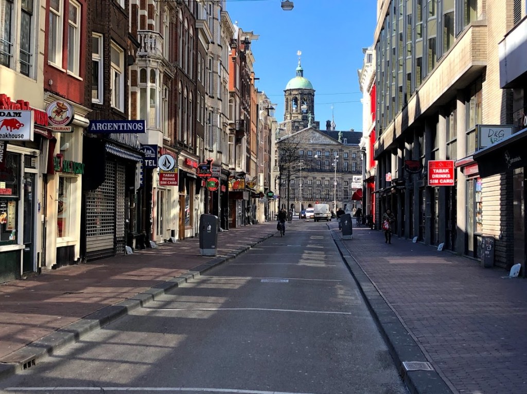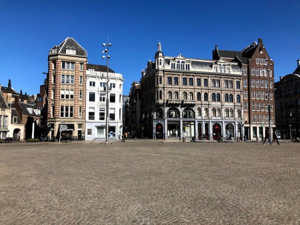Waar je met dit mooie weer in de Amsterdamse parken toch nog volop mensen vindt, is het Museumplein zo zonder toeristen echt leeg. Wat een ruimte!