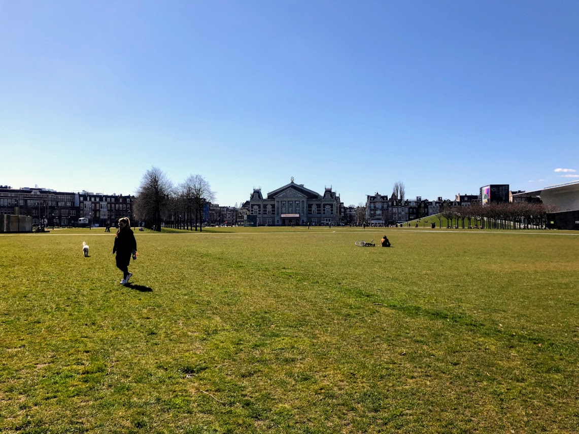 Waar je met dit mooie weer in de Amsterdamse parken toch nog volop mensen vindt, is het Museumplein zo zonder toeristen echt leeg. Wat een ruimte!